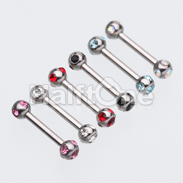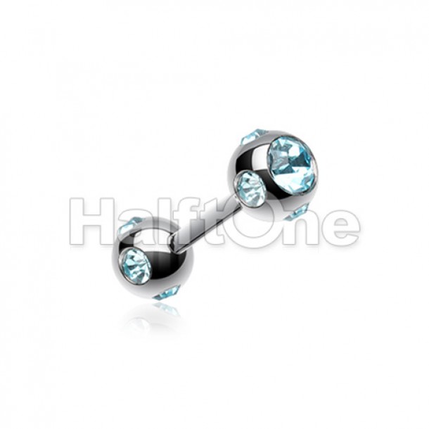 Double Aurora Gem Ball Steel Cartilage Tragus BarbellAll of our materials are certified for body piercing jewelry. See Certificates