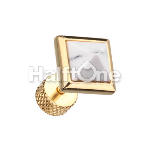 Golden Square Turquoise Pyramid Stone Steel Fake Plug