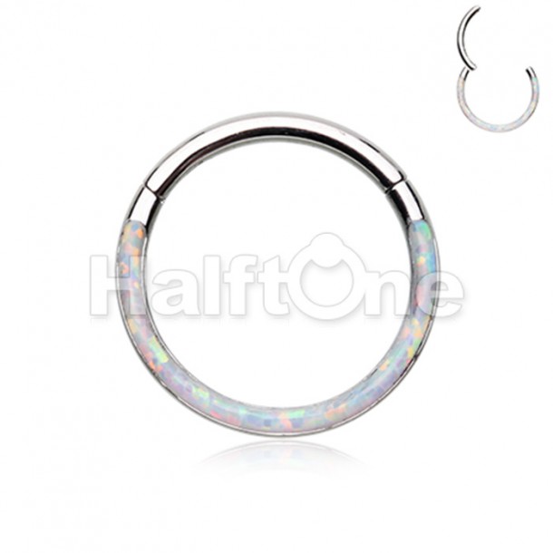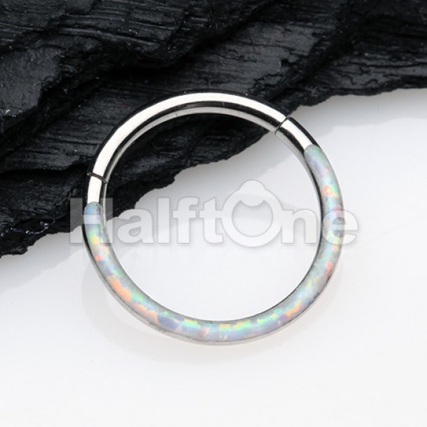 Front Facing Opal Inlay Steel Seamless Hinged Clicker Ring