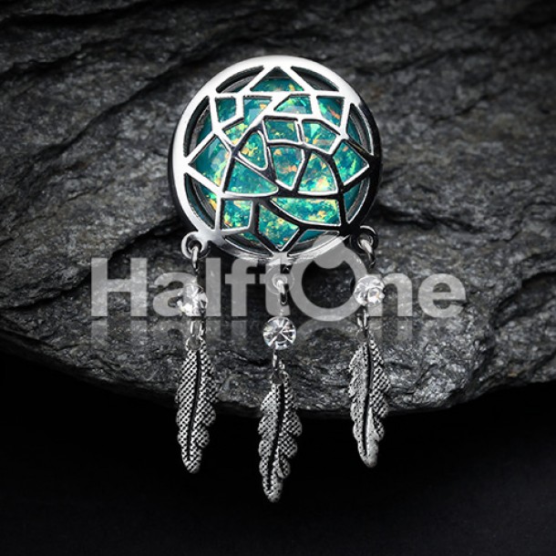 Opal Sparkle Dreamcatcher Single Flared Ear Gauge PlugAll of our materials are certified for body piercing jewelry. See Certificates