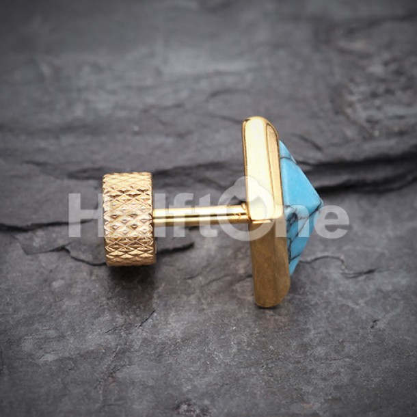 Golden Square Turquoise Pyramid Stone Steel Fake Plug