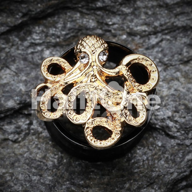 Golden Evil Octopus Ear Gauge Tunnel Plug